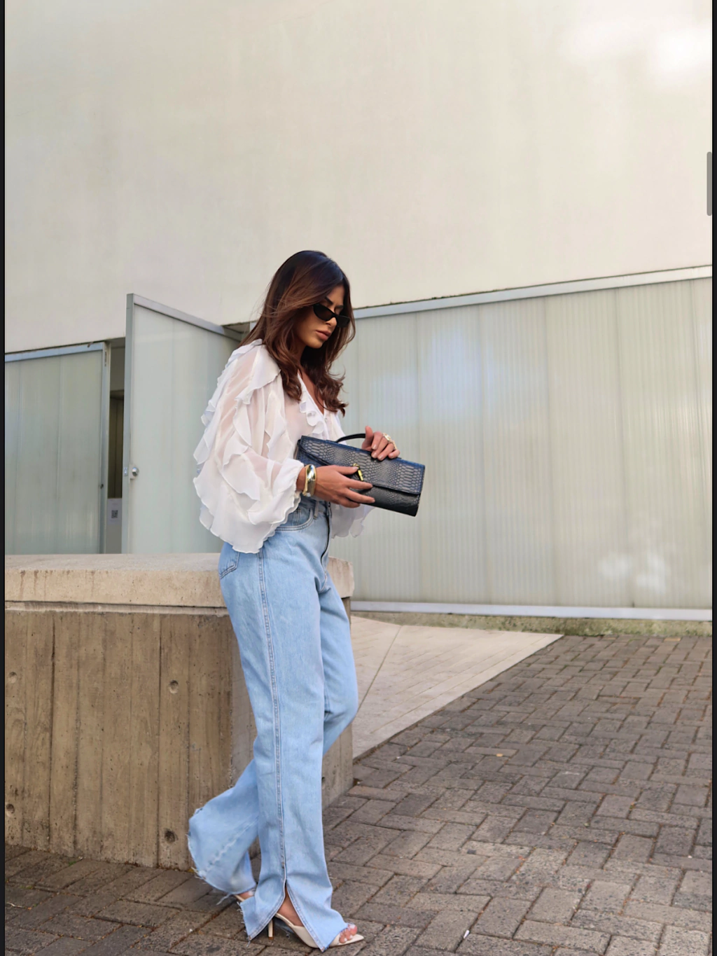 A Calça Jeans com Abertura Lateral é a escolha ideal para quem deseja unir estilo e conforto em uma única peça. Sua modelagem com corte reto e cintura média que alonga a silhueta, é complementada por uma charmosa abertura na lateral da barra, conferindo um toque moderno e sofisticado ao visual.